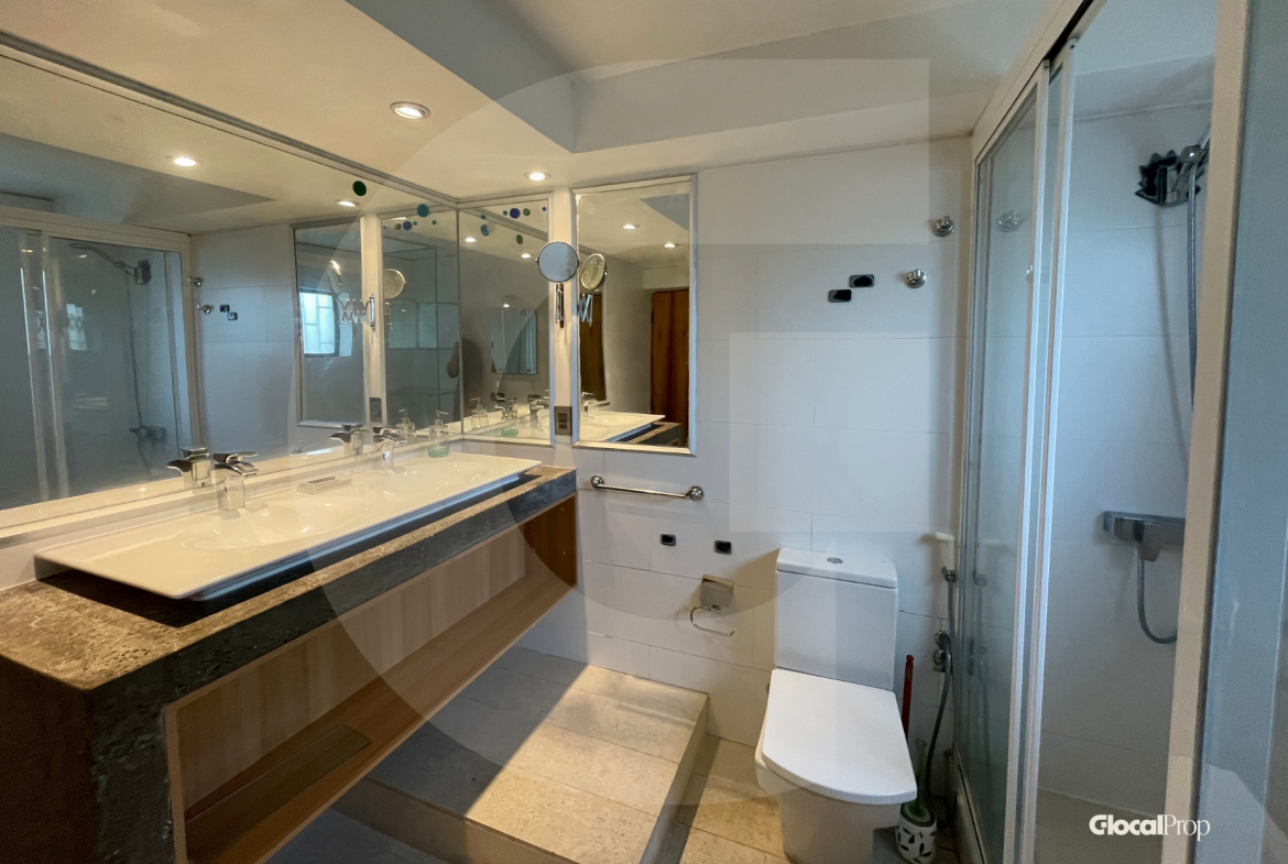 La distribución de los dos dormitorios principales es impecable: el primero, de buen tamaño, incluye un closet y ventanales que se abren a un balcón cerrado. Justo enfrente, se encuentra un amplio baño completo. El dormitorio principal es un espacio acogedor y luminoso, también con acceso al balcón. Este dormitorio dispone de un walk-in closet y un baño en suite reformado, que cuenta con doble lavamanos y una moderna ducha, lo que brinda mayor funcionalidad y estilo.
